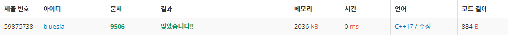* 코드를 제출한 시점과 글 작성 시점이 달라, 주석 추가 등의 이유로 실행 결과의 코드 길이는 상이할 수 있음.