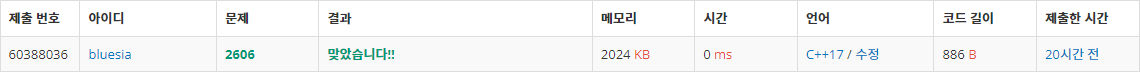 * 코드를 제출한 시점과 글 작성 시점이 달라, 주석 추가 등의 이유로 실행 결과의 코드 길이는 상이할 수 있음.